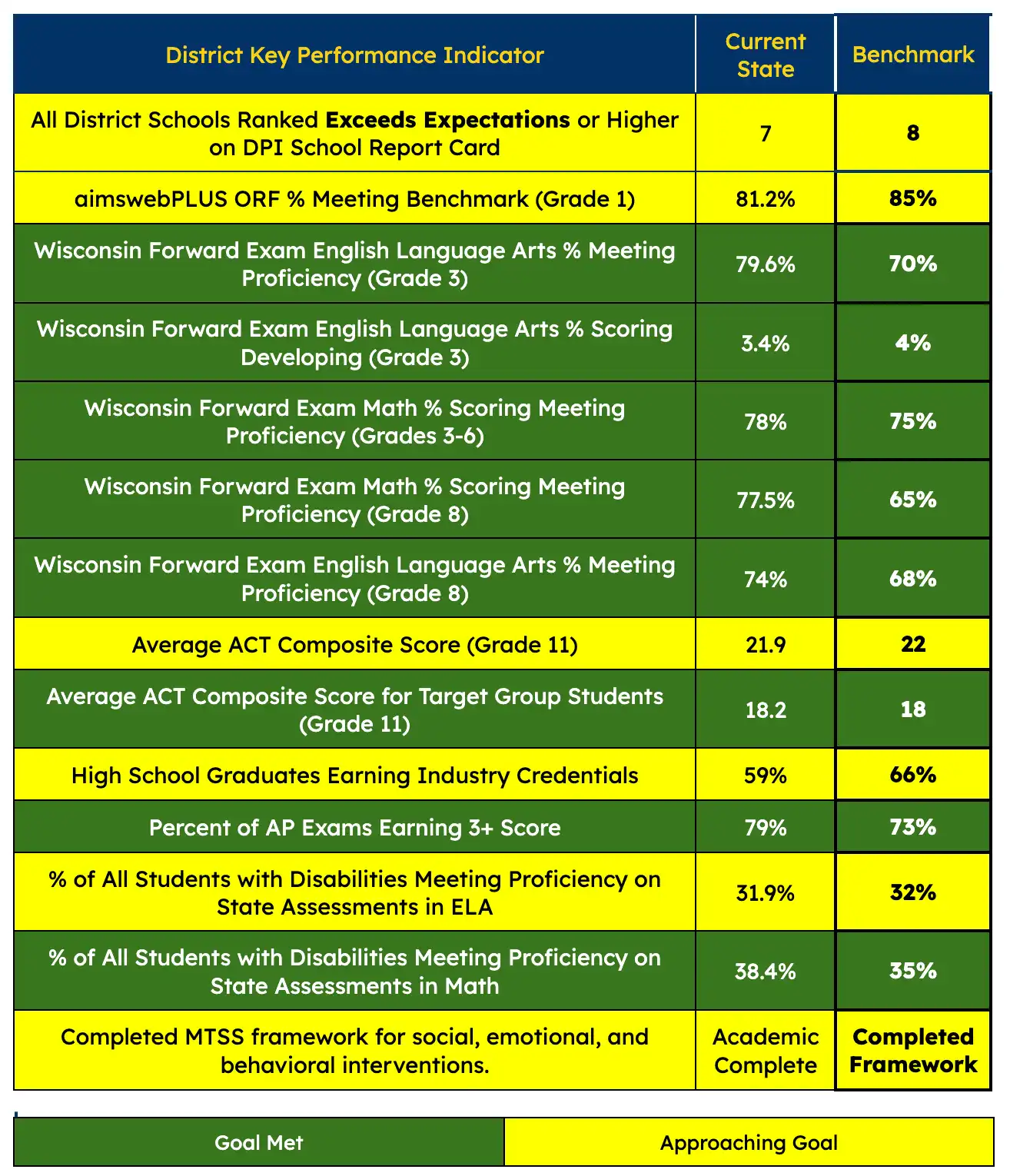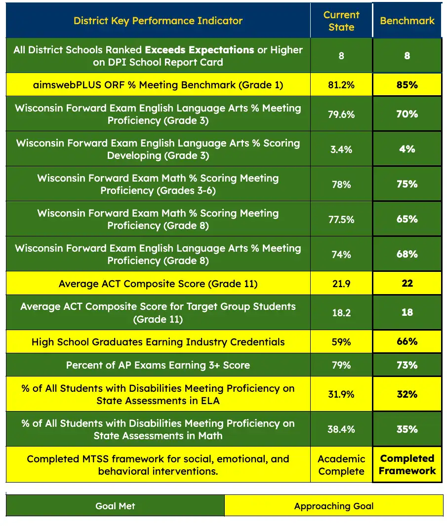 Goal 1: The Mukwonago Area School District will achieve a top 10% position on the Wisconsin Department of Public Instruction District Report Cards with each individual school also achieving a top 10% position on the School Report Cards.